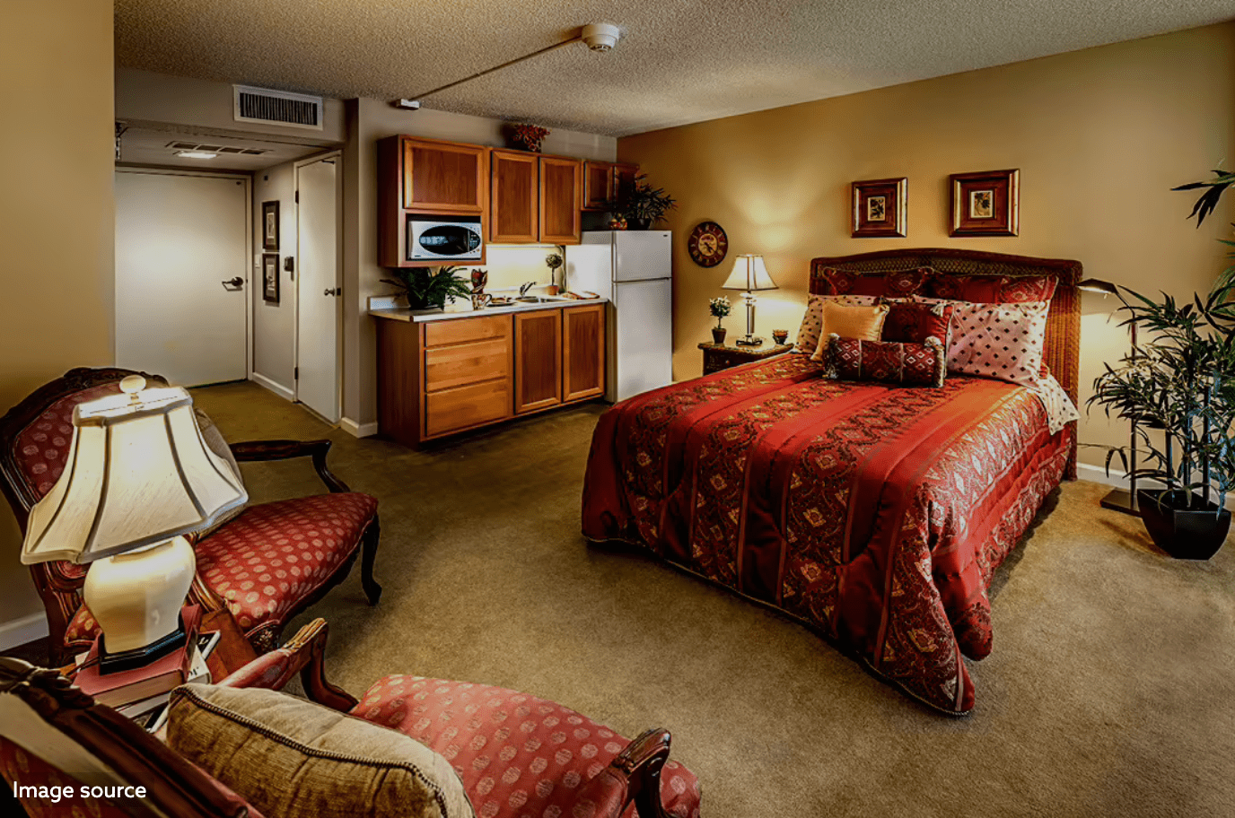 Country Club Manor is a senior retirement community featuring independent living, an assisted living community, and a memory care facility in Sacramento, CA. The cost for the shared or private living spaces starts at around $2,970 per month which includes all laundry, linen, and housekeeping services. Each of the living residences opens directly into one of the common meeting areas creating a home-like atmosphere and familiar environment for residents. Many of the living spaces have beautiful views of the gardens and local neighborhood areas. Country Club Manor is conveniently located near numerous shopping centers, restaurants, parks, cultural centers, golf courses, movie theaters, and places of worship. Transportation is provided for appointments and scheduled outings for shopping, dining, or other excursions into the community. The senior retirement community features two expansive outdoor courtyards with peaceful landscaped gardens, walking paths, covered patios, and comfortable seating for reflecting or socializing with friends. Residents enjoy a music parlor with a grand piano, billiards area, game room, movie theater, arts and crafts programs, exercise and fitness programs, and worship services. Three delicious, healthy meals are created each day and served in family-style dining. The senior living community healthcare team is available at all times to assist with any activities of daily living (ADLs) such as bathing, showering, dressing, medication management, and other care services. The memory care facility provides compassionate, quality care to residents facing various forms of dementia. The specialized level of care offers stimulation and growth for the best life possible.